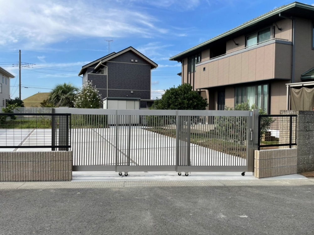 今回は、広い砂利の駐車スペースと花壇だった敷地を、フラットな駐車スペースにし、フェンス・門扉を設置しました。